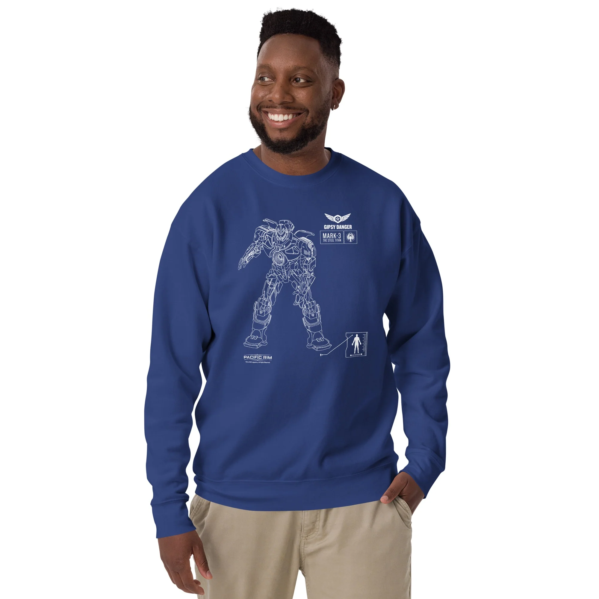 Warmth and style meet the world of Jaegers with the Pacific Rim Gipsy Danger Sweatshirt. This sweatshirt is not just cozy attire; it's a wearable homage to the monumental showdowns of Pacific Rim.