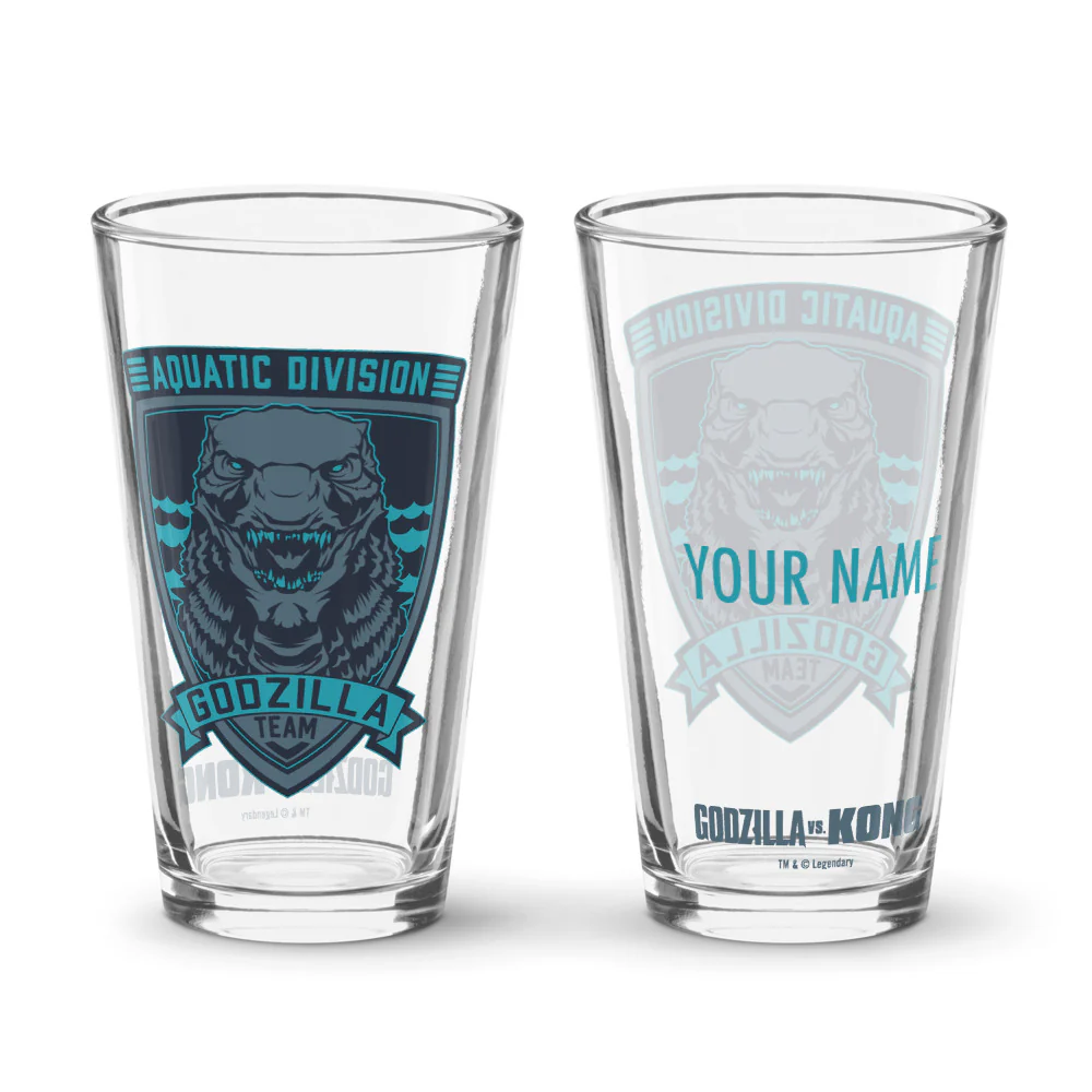 Unleash your inner titan with the Godzilla vs. Kong Team Godzilla Personalized Pint Glass. Show your loyalty to the King of the Monsters with epic artwork and custom engraving. Perfect for monster-sized sips and fans ready to rumble!